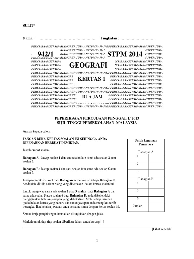 Soalan Geografi Percubaan Stpm Penggal 1 2014 via id.scribd.com